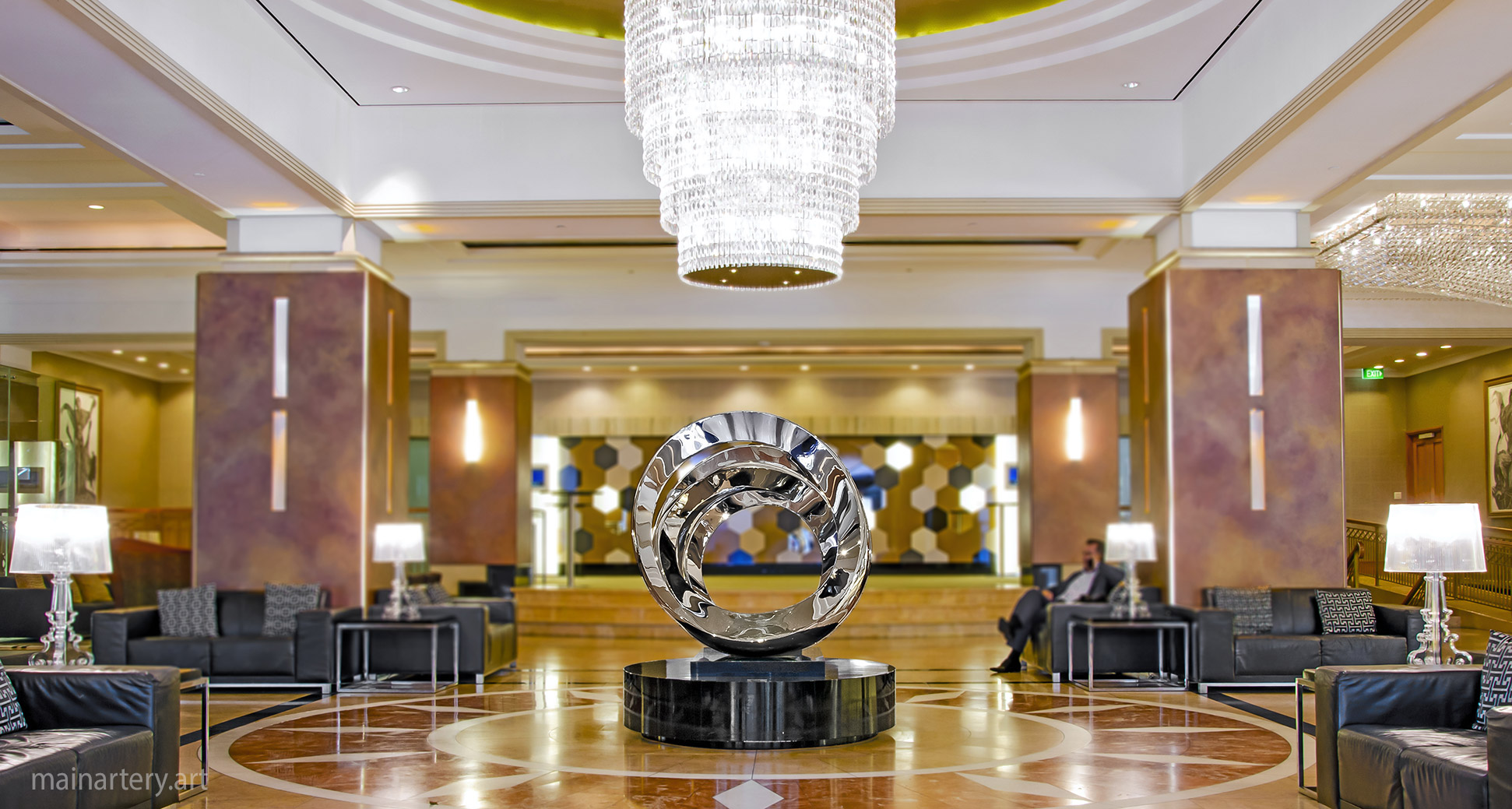 Ultimately, “Upgrading Luxury Properties” with “Mortal Coil” highlights the importance of integrating bespoke artistic elements into luxury environments. This mirror polished stainless steel sculpture not only enhances the visual and atmospheric qualities of luxury hotel lobbies but also reinforces branding, creating a memorable and elegant experience for all guests.